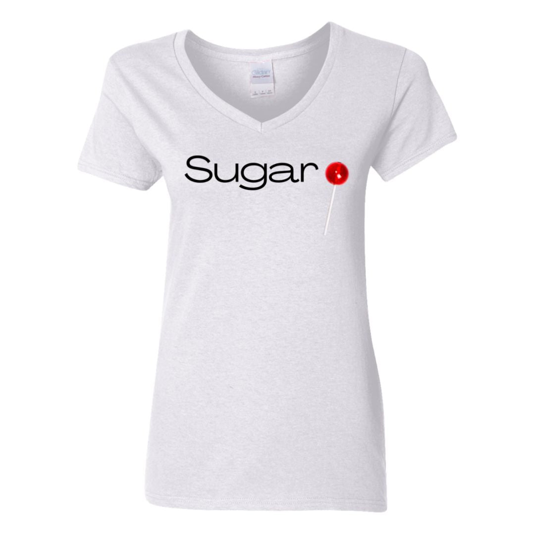 Sugar T-Shirt for the Sweetest Gal I know. Cute, fun and sexy design. V-NECK, short sleeved style cotton tee.